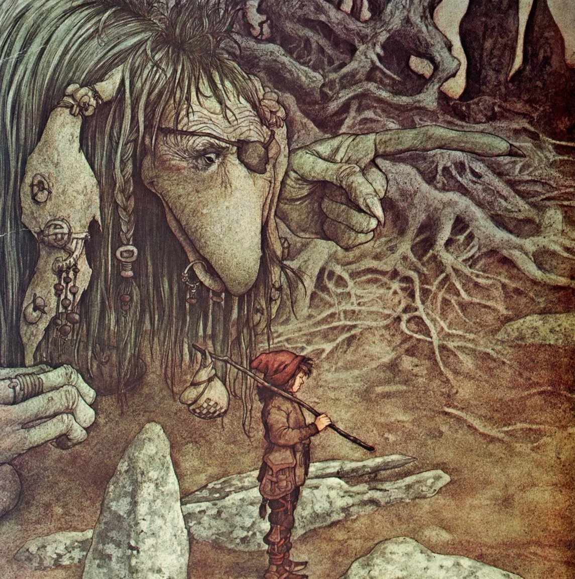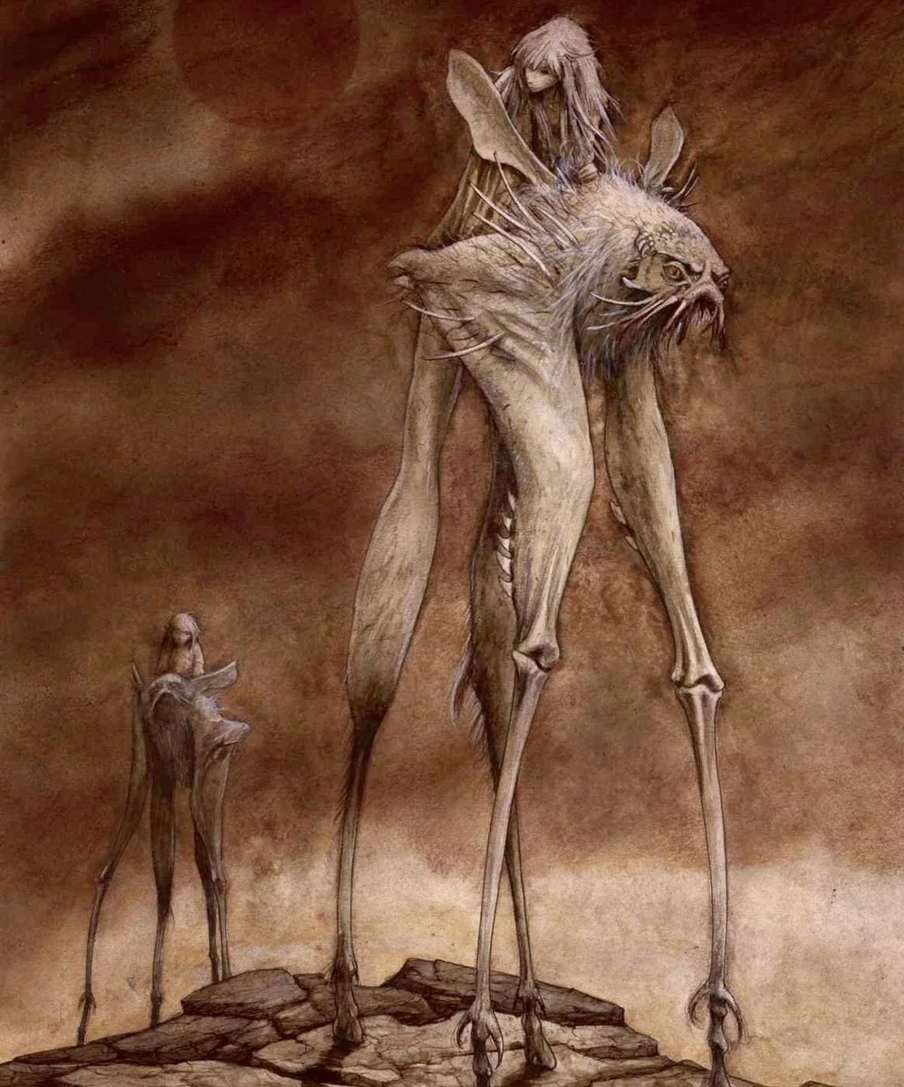 Wspomniany wcześniej Brian Froud, znany m.in. z książki Faeries (1978, stworzonej wspólnie z Alanem Lee, ilustratorem dzieł Tolkiena) oraz projektów do filmów Jima Hensona, takich jak Ciemny kryształ (The Dark Crystal, 1982) i Labirynt (1986), kreował wizję fantastyki, w której istoty z pogranicza natury i mitu rzadko bywały jednoznacznie piękne czy złe. Podobnie jak w świecie Planescape, postaci Frouda często przedstawiane są w zniekształconych proporcjach, co nadaje im aurę obcości i niepokoju, ale zarazem subtelnego humoru i baśniowej lekkości. Sam Tony DiTerlizzi, jeden z architektów stylu, o którym szerzej jeszcze opowiemy, tak opisywał swoją fascynację Froudem: „Gdyby prześledzić mój rozwój jako młodego artysty na osi czasu, w szkole podstawowej kopiowałem ilustracje z Dungeons & Dragons, a w liceum zacząłem kopiować prace Briana Frouda. Od razu urzekły mnie jego projekty postaci utrzymane w ciepłych, ziemistych tonacjach – byłem całkowicie zafascynowany jego twórczością.”